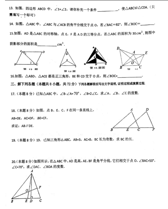 湖北省武漢市實驗初中20189月月考八年級數學(圖片版)(2)