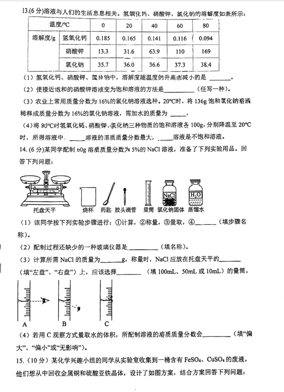 2024年福建廈門滄海區北附學校九年級化學月考真題(圖片版)(3)