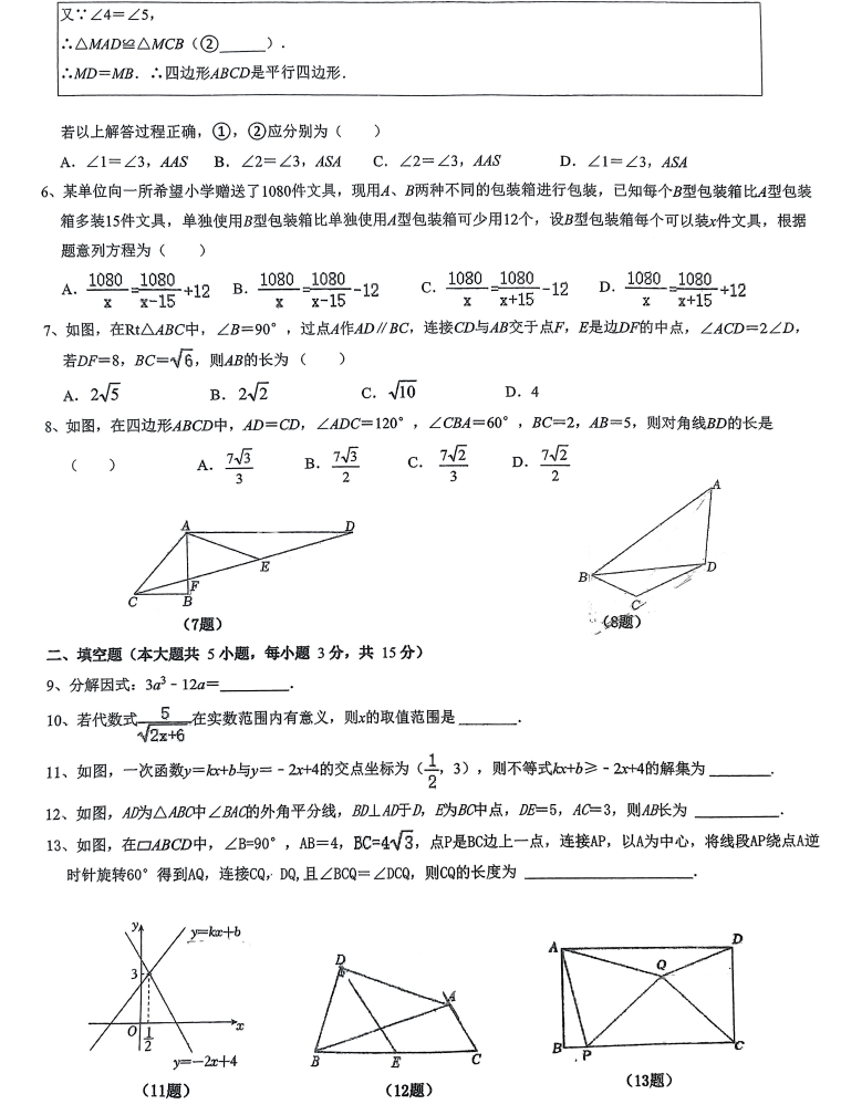 2024-2025廣東深圳福田區外國語學校九年級上開學考試數學試題(圖片版)(2)