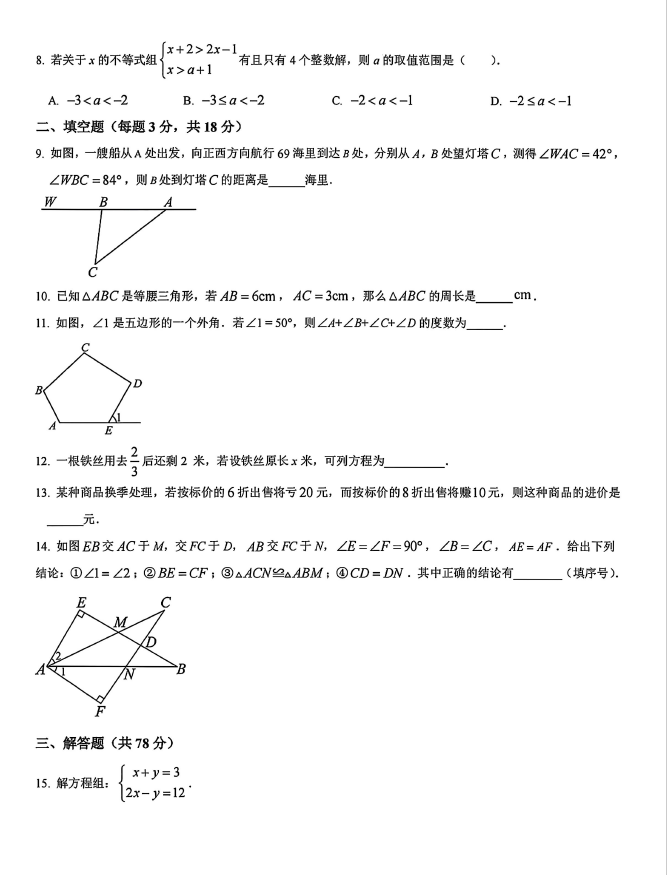 初中期末試題