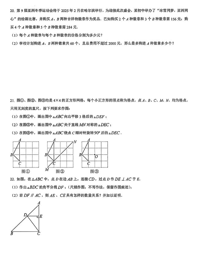 2024-2025學年遼寧鐵嶺清河區張相鎮中學七年級下冊數學期末真題(圖片版)(4)