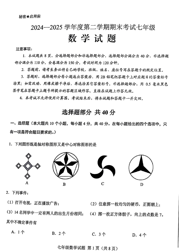 相關推薦:2024-2025學年全國各省市七年級下冊各科期末真題及答案匯總