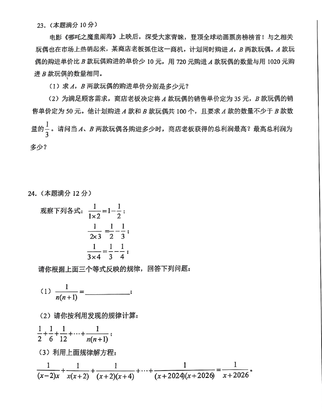 2024-2025學年山東濟南萊蕪區七年級下冊數學期末真題(圖片版)(6)