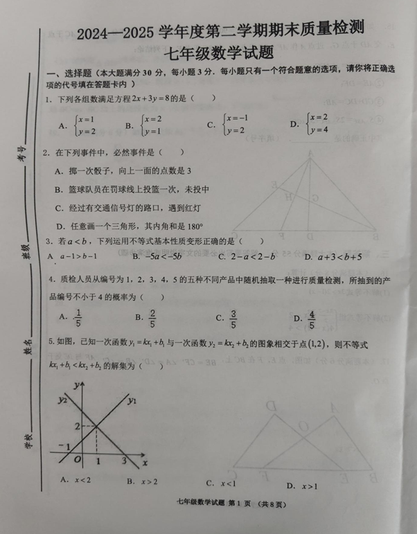 資料內容:【25年  初一 初二 初三期末考試真題】
