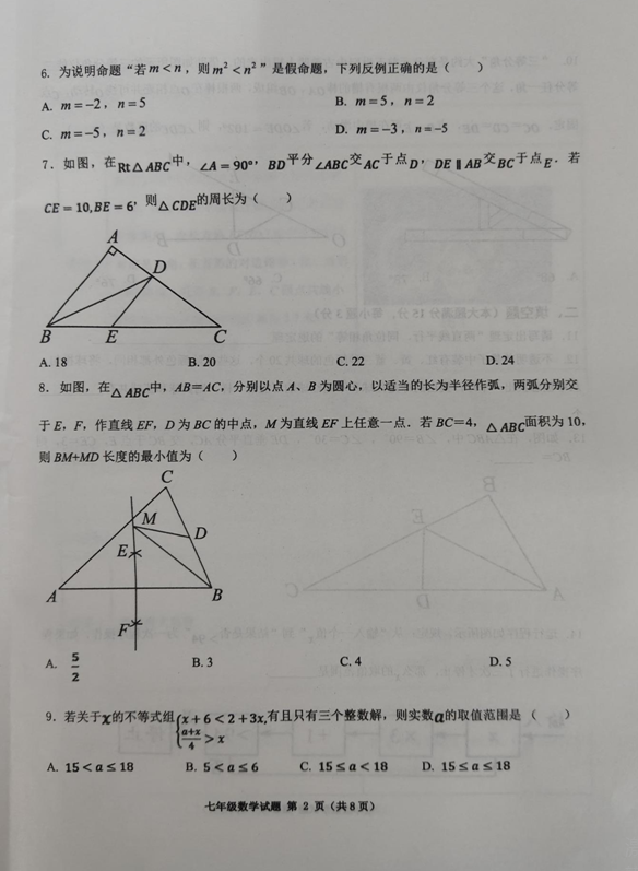 2024-2025學年山東濟寧高新區七年級下冊數學期末真題(圖片版)(2)