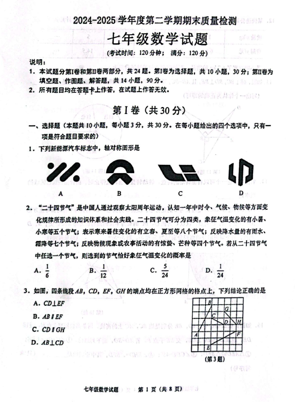 相關(guān)推薦:2024-2025學(xué)年全國各省市七年級下冊各科期末真題及答案匯總