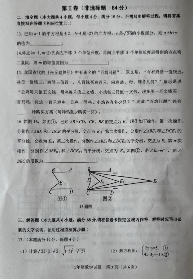 2024-2025學年山東日照五蓮縣七年級下冊數學期末真題(圖片版)(3)