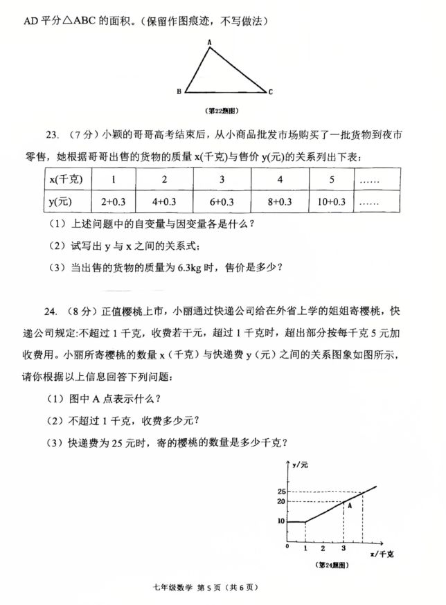 2024-2025學年陜西寶雞陳倉區七年級下冊數學期末真題(圖片版)(5)