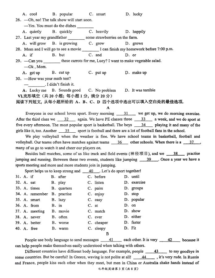 2024-2025學年安徽銅陵樅陽縣七年級下學期英語期末真題(圖片版)(3)