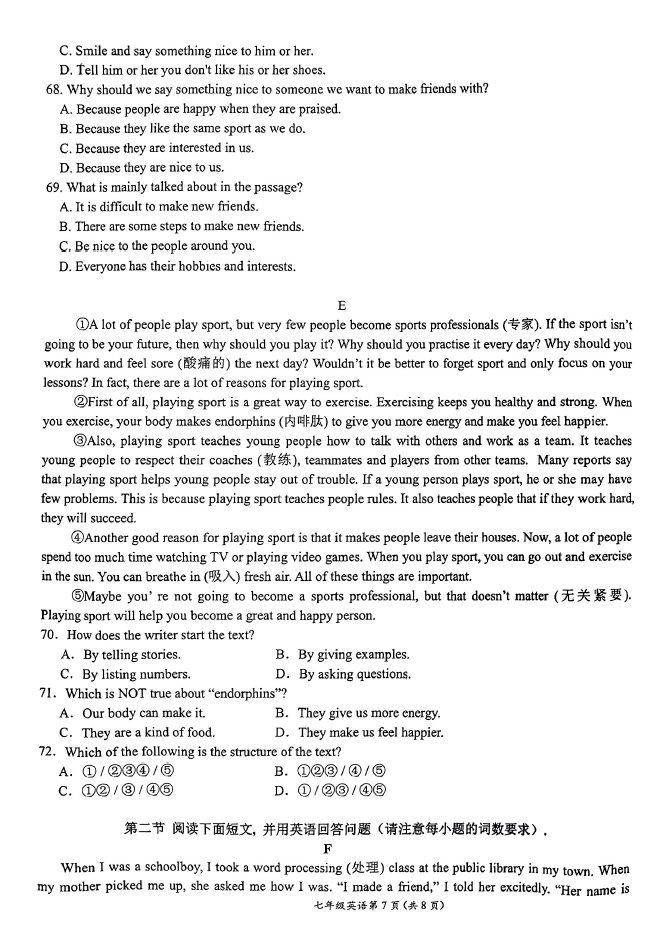 2024-2025學年安徽銅陵樅陽縣七年級下學期英語期末真題(圖片版)(5)