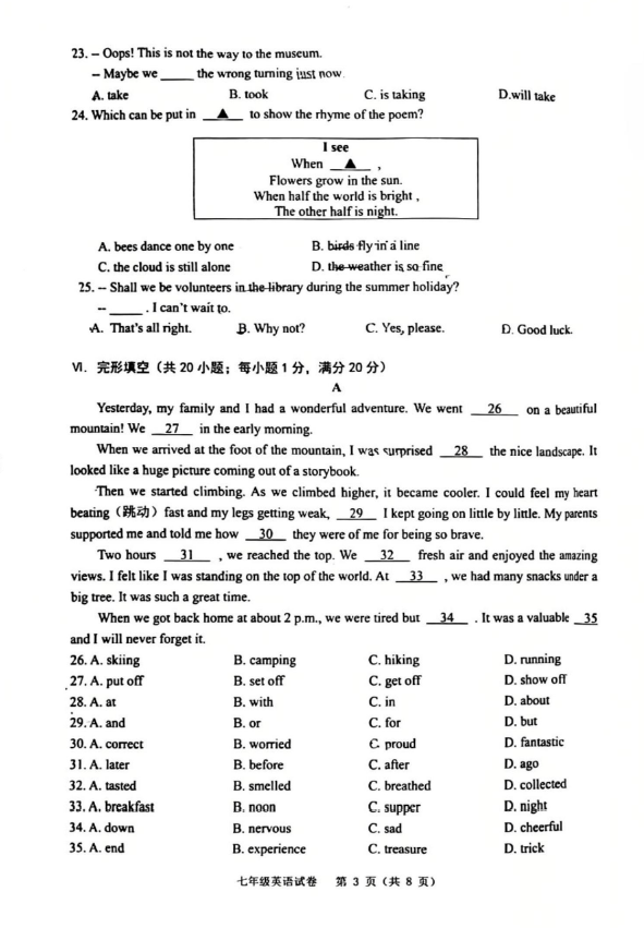 2024-2025學年安徽蕪湖七年級下學期英語期末真題(圖片版)(3)