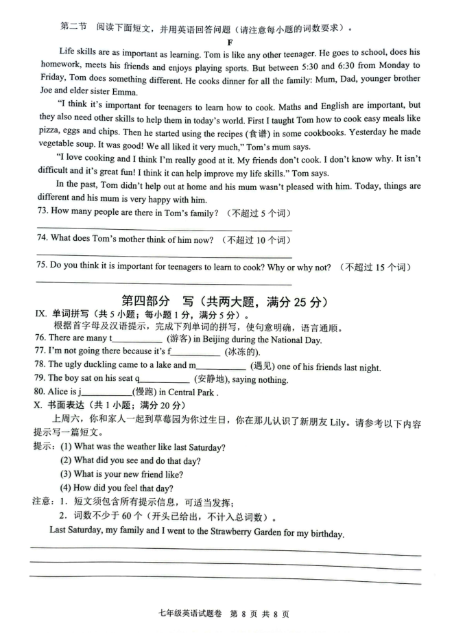 相關推薦:2024-2025學年全國各省市七年級下冊各科期末真題及答案匯總
