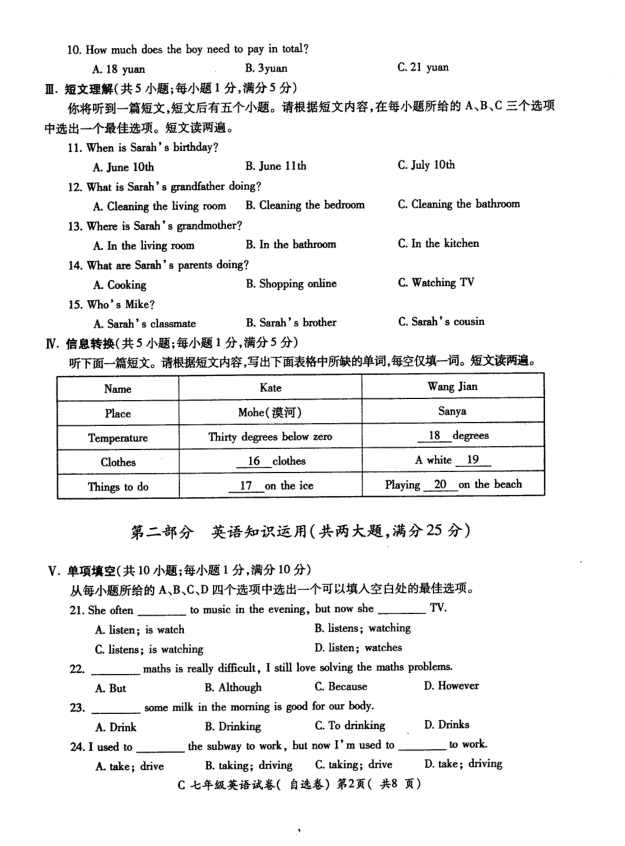 您現在的位置:中考 > 初中資源庫 > 期末試題 > 初一英語 > 正文