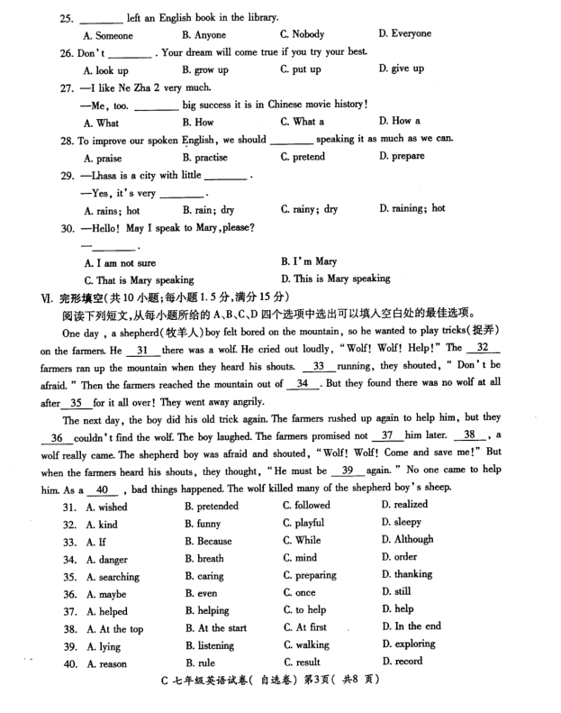 2024-2025學年安徽宣城寧國市七年級下學期英語期末真題(圖片版)(3)
