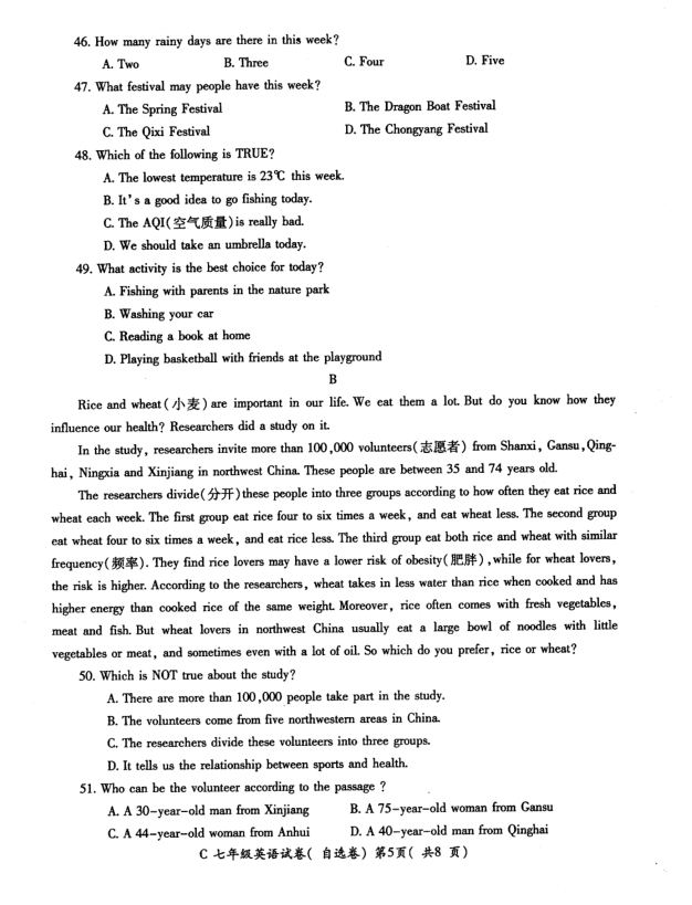 2024-2025學年安徽宣城寧國市七年級下學期英語期末真題(圖片版)(5)