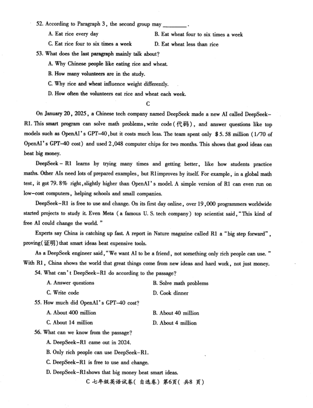 2024-2025學年安徽宣城寧國市七年級下學期英語期末真題(圖片版)(6)