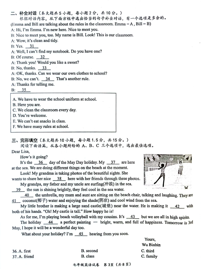 2024-2025學年廣西玉林容縣七年級下學期英語期末真題(圖片版)(3)