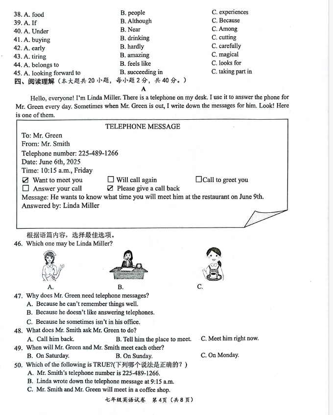 初中期末試題