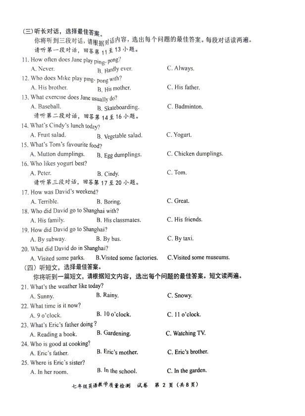 2024-2025學年廣西防城港七年級下學期英語期末真題(圖片版)(2)