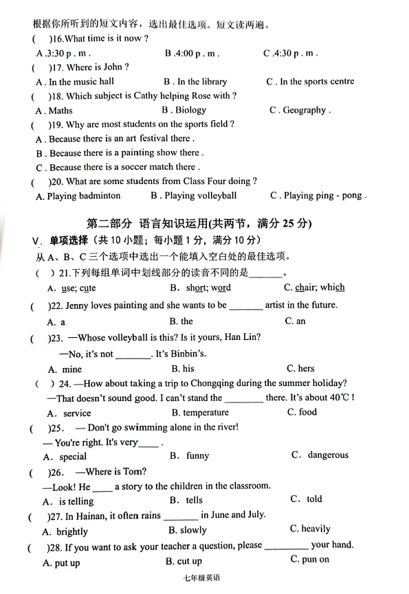 2024-2025學年海南臨高縣七年級下學期英語期末真題(圖片版)(2)