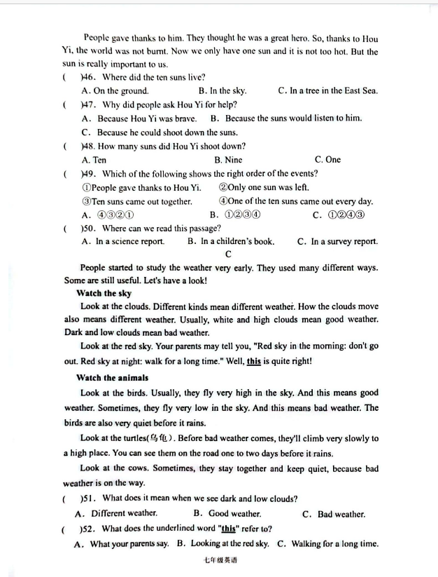 初中期末試題