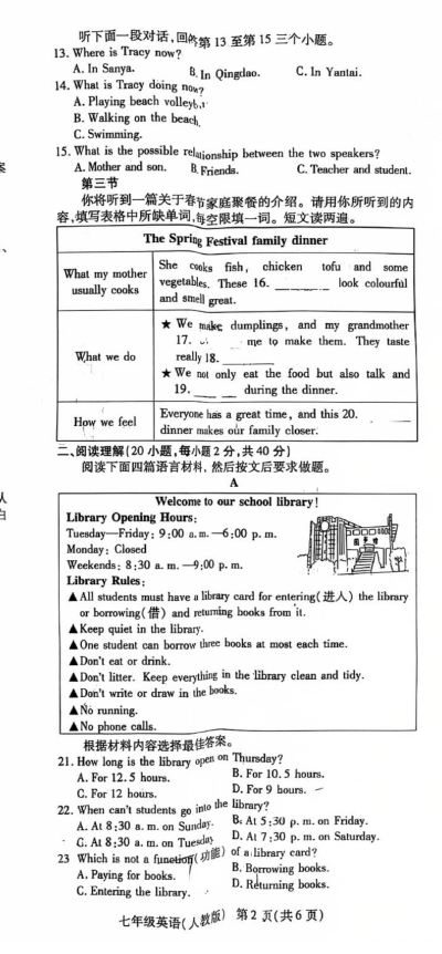 初中期末試題