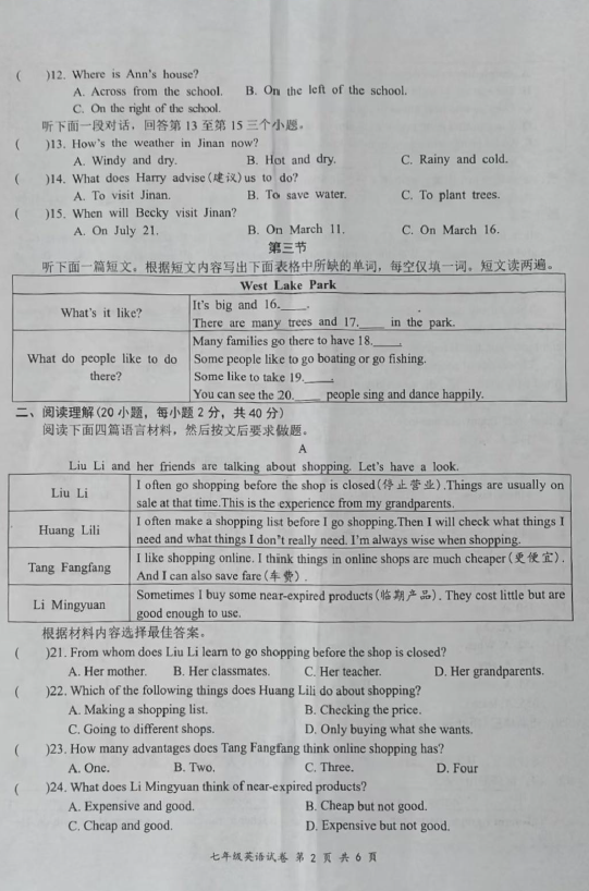 2024-2025學年河南開封杞縣七年級下學期英語期末真題(圖片版)(2)