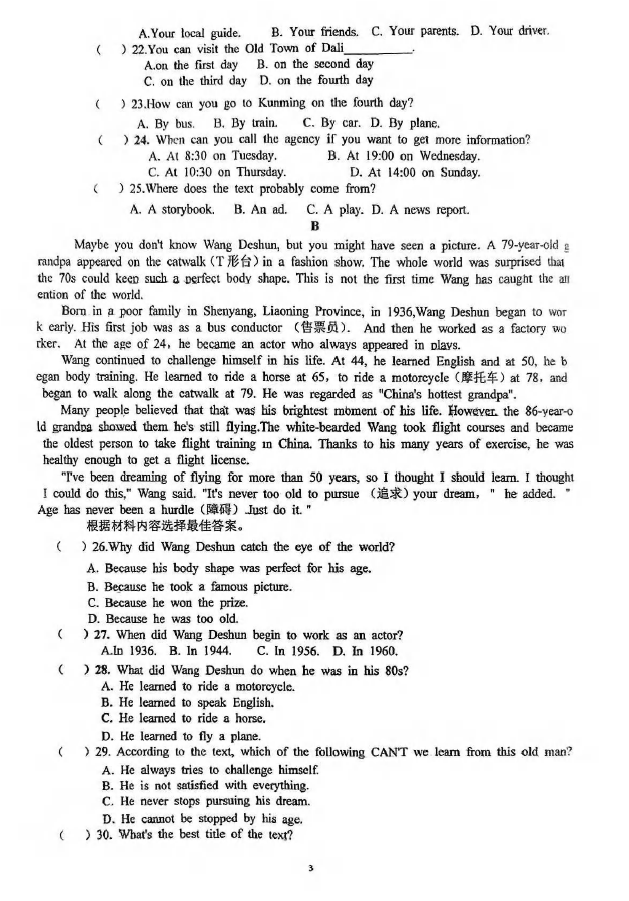 2024-2025學年河南許昌襄城一中七年級下學期英語期末真題(圖片版)(3)