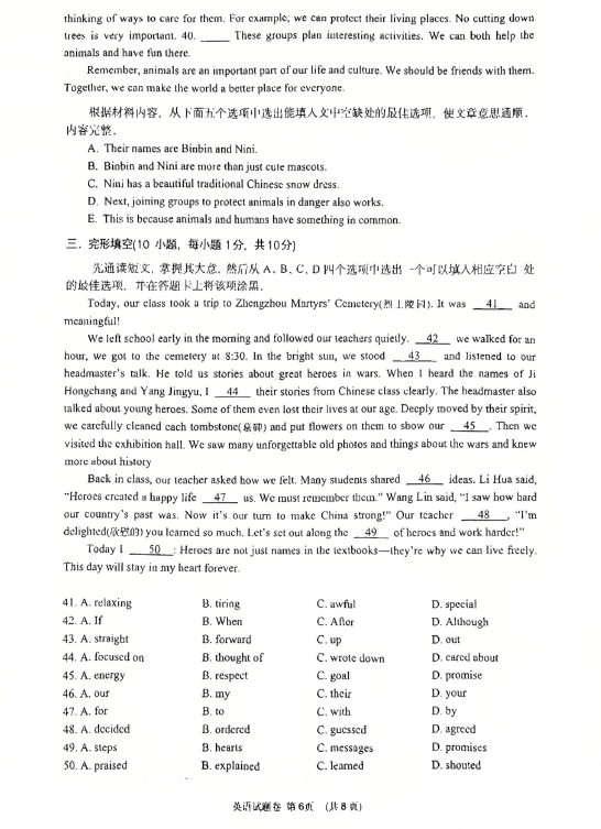 2024-2025學年河南鄭州高新開發區七年級下學期英語期末真題(圖片版)(6)