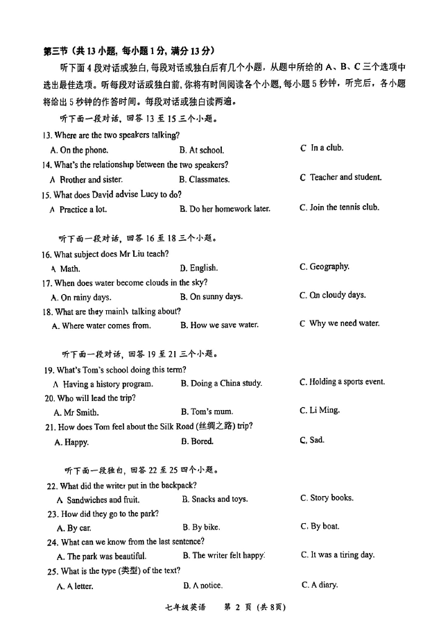 初中期末試題