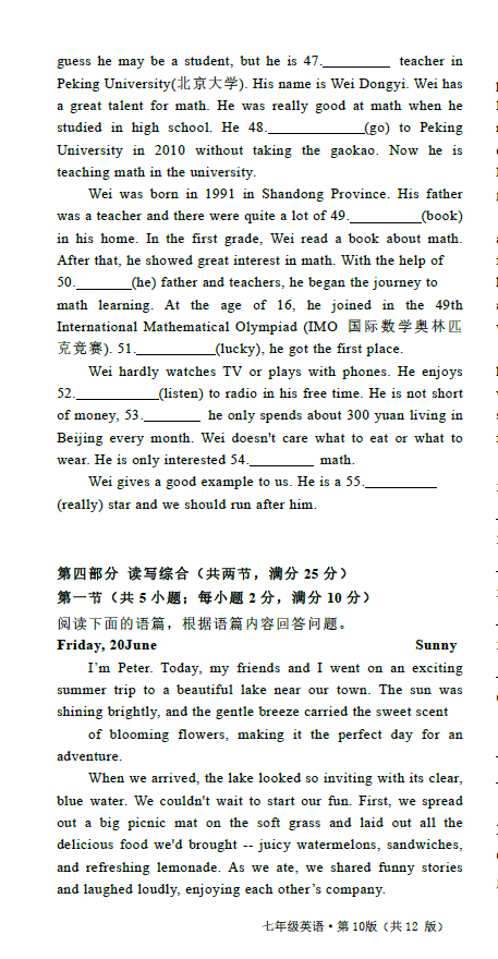 初中期末試題