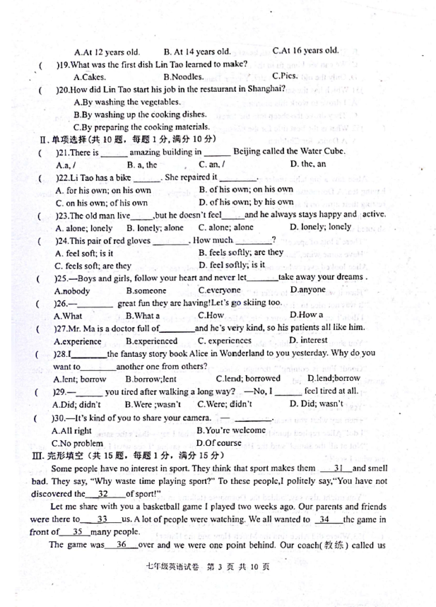 2024-2025學年江蘇淮安漣水縣七年級下學期英語期末真題(圖片版)(3)