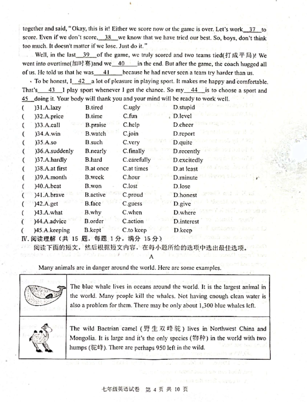 2024-2025學年江蘇淮安漣水縣七年級下學期英語期末真題(圖片版)(4)
