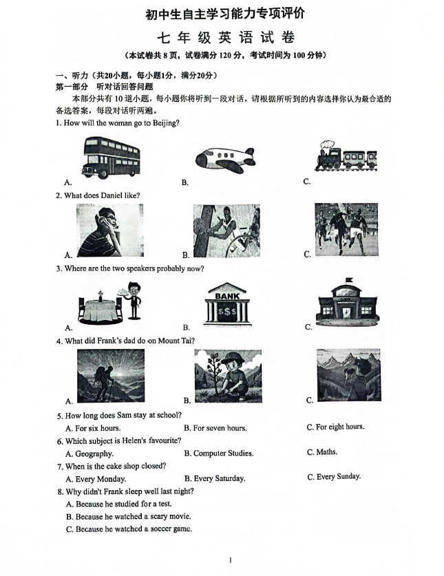 資料內容:【25年 初一 初二 初三期末考試真題】