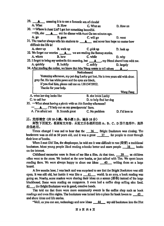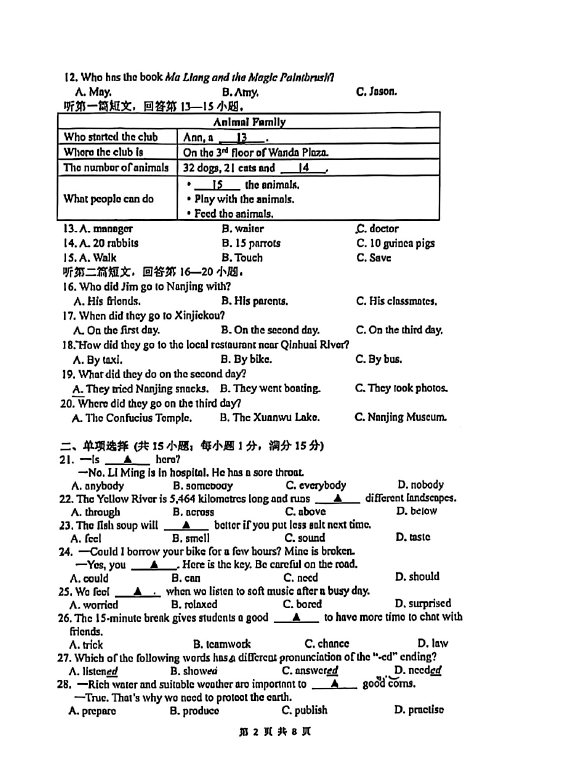 初中期末試題