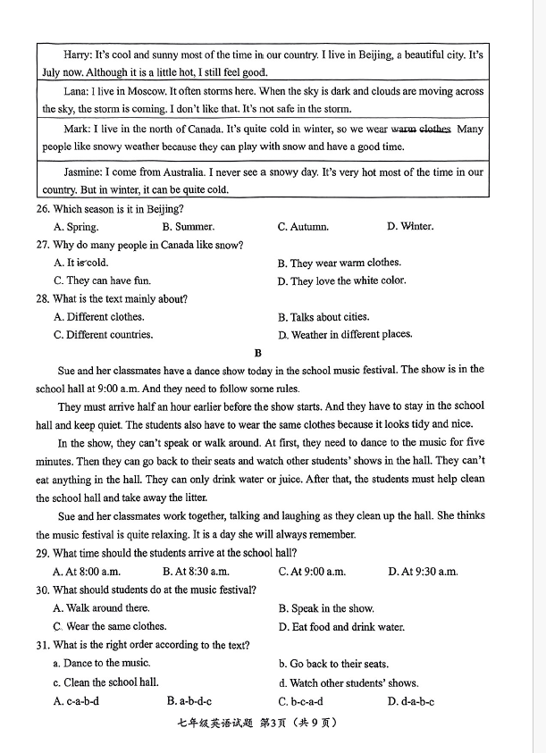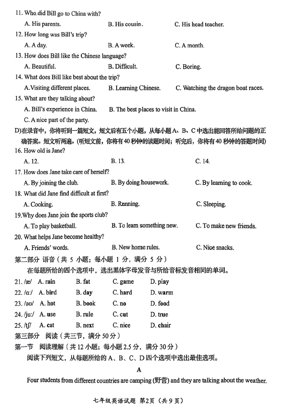2024-2025學年山東濟南槐蔭區七年級下學期英語期末真題(圖片版)(2)