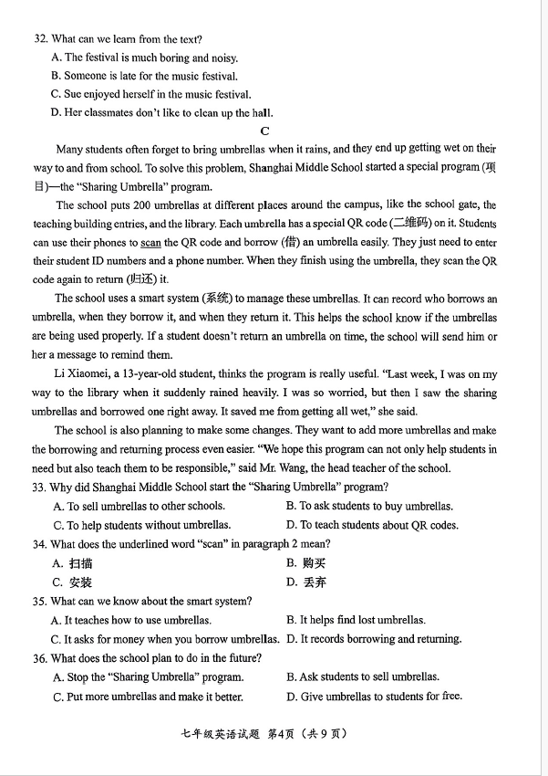 2024-2025學年山東濟南槐蔭區七年級下學期英語期末真題(圖片版)(3)