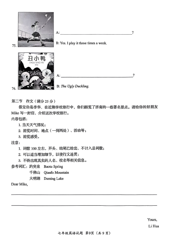 相關推薦:2024-2025學年全國各省市七年級下冊各科期末真題及答案匯總