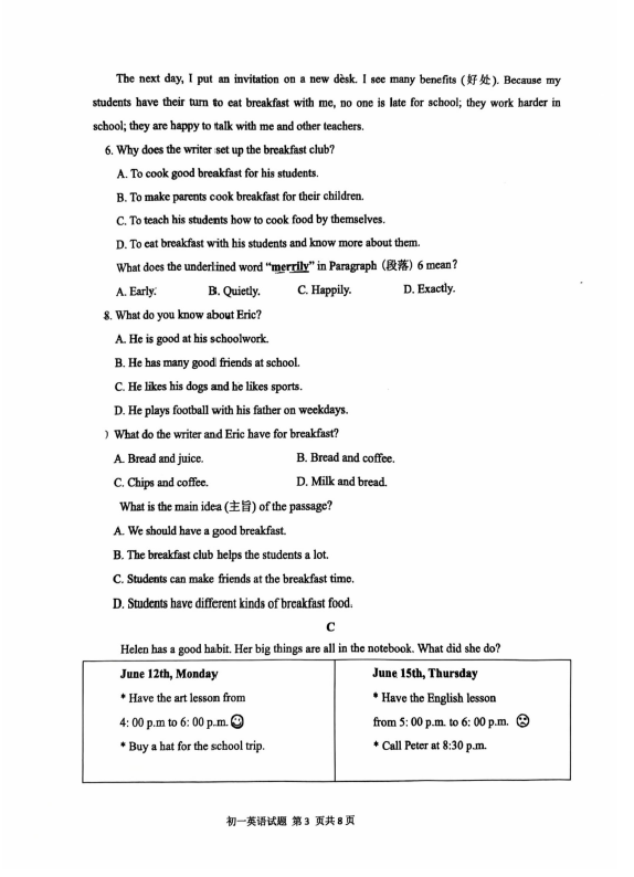 2024-2025學年山東煙臺萊陽市七年級下學期英語期末真題(圖片版)(3)