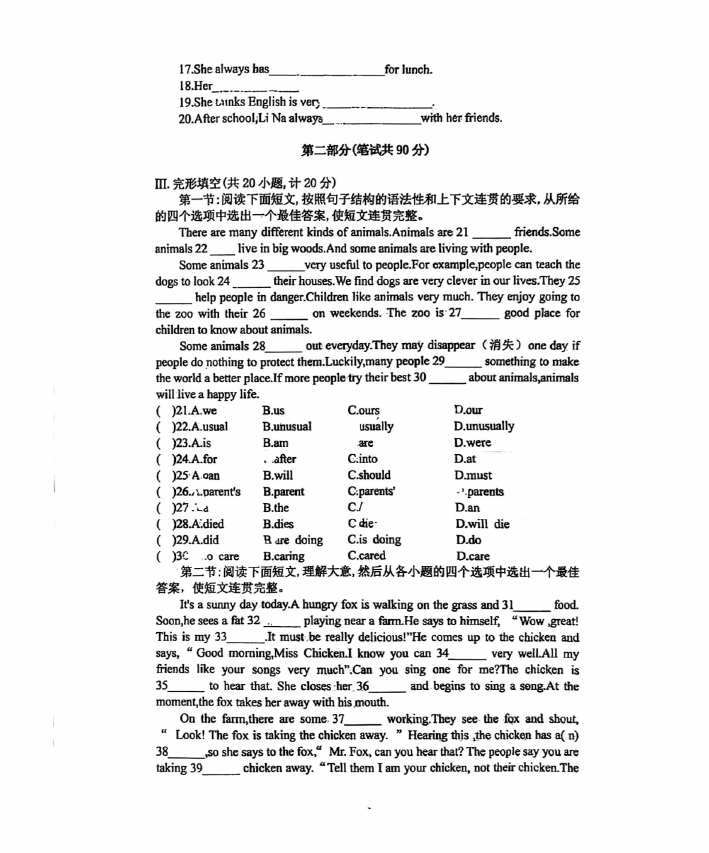 初中期末試題
