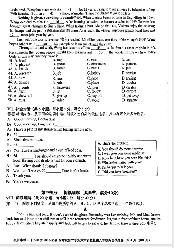 2024-2025學年安徽合肥三十八中學八年級下學期英語期末真題(圖片版)(4)