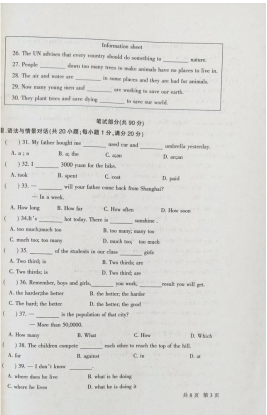 初中期末試題
