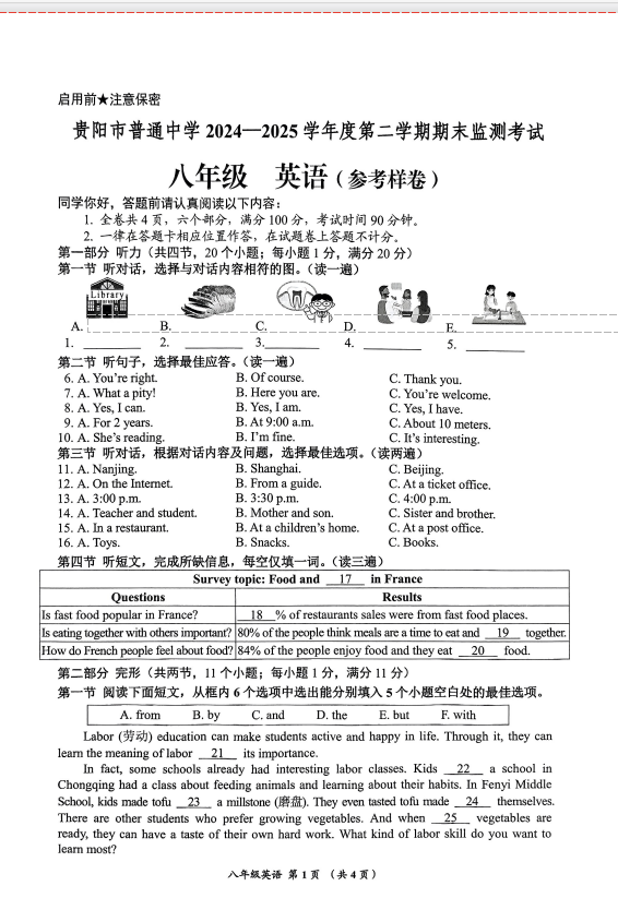 中考網(wǎng)整理了關(guān)于2024-2025學(xué)年貴州貴陽清鎮(zhèn)市八年級(jí)下學(xué)期英語期末真題(圖片版),希望對(duì)同學(xué)們有所幫助,僅供參考。