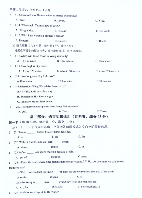 初中期末試題