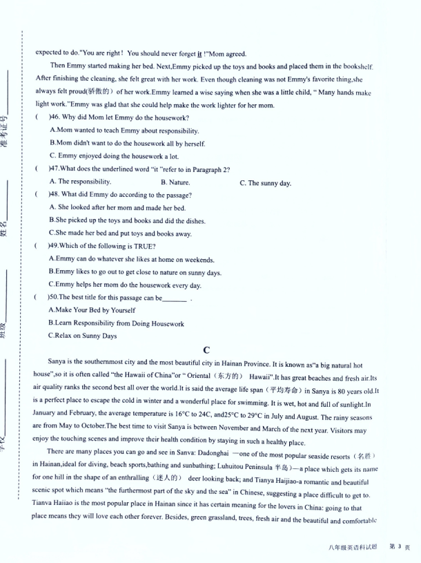 2024-2025學年海南華東師大二附中八年級下學期英語期末真題(圖片版)(5)