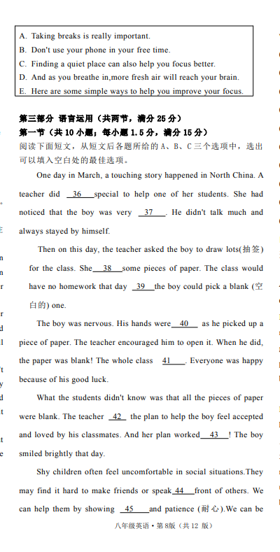 初中期末試題