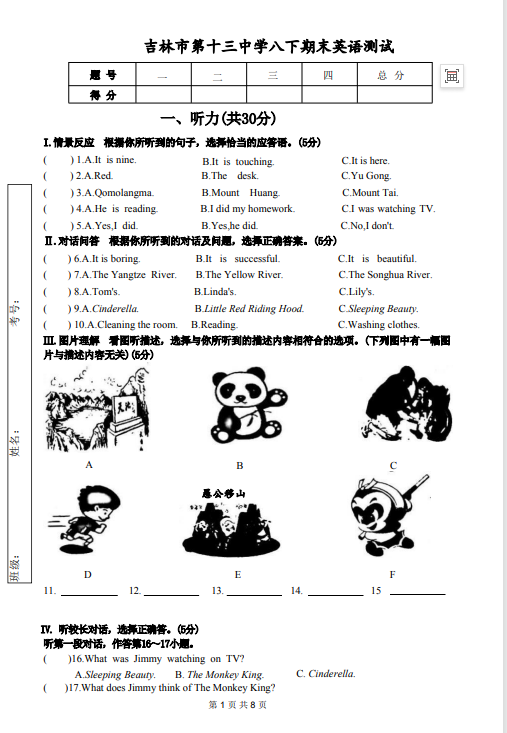 中考網整理了關于2024-2025學年吉林吉林市十三中八年級下學期英語期末真題(圖片版),希望對同學們有所幫助,僅供參考。