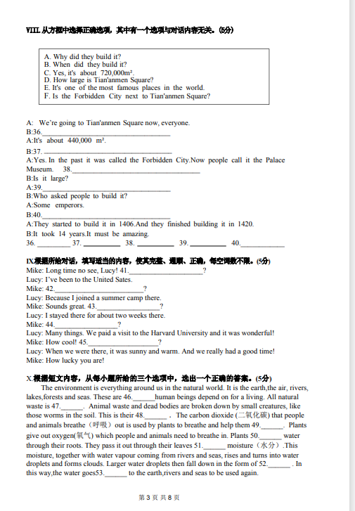 2024-2025學年吉林吉林市十三中八年級下學期英語期末真題(圖片版)(3)