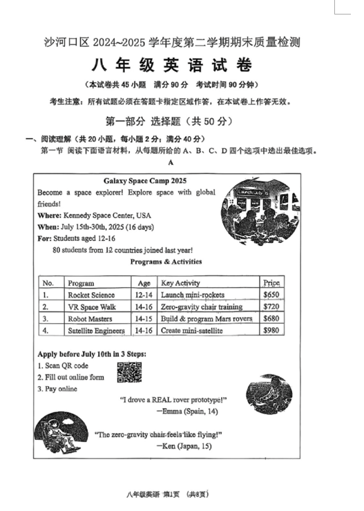 中考網整理了關于2024-2025學年遼寧大連沙河口區八年級下學期英語期末真題(圖片版),希望對同學們有所幫助,僅供參考。