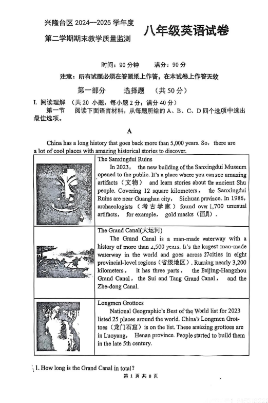 中考網整理了關于2024-2025學年遼寧盤錦興隆臺實驗中學八年級下學期英語期末真題(圖片版),希望對同學們有所幫助,僅供參考。
